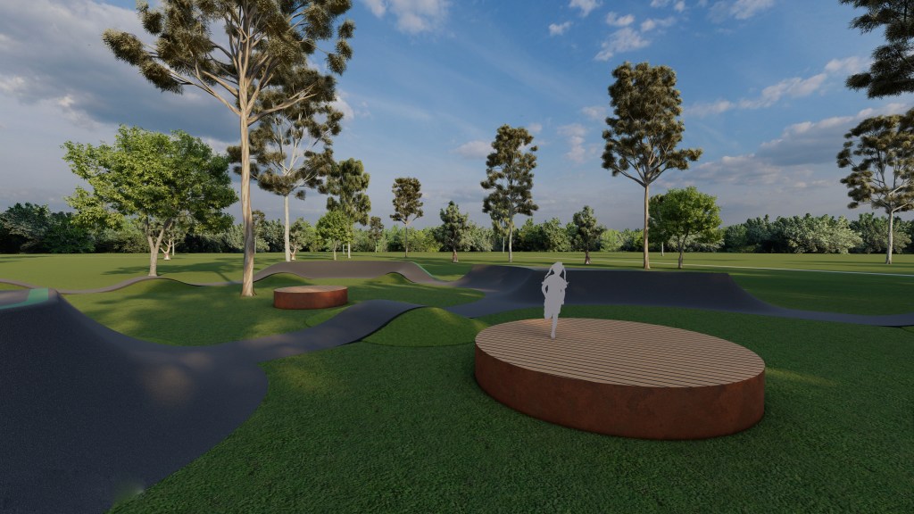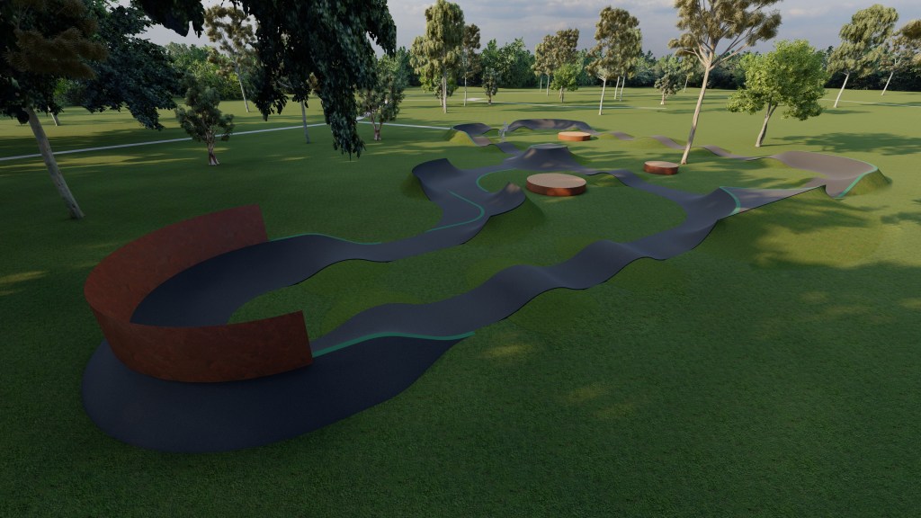 Pump tracks can have a variety of uses and cater to a wide range of user groups, ages and abilities. It was important to get it right so i travelled to the school and park for design workshops with the local stakeholders, parent, user groups and council members. The very modest budget was stretched to still include elements to aim for as the locals skills progressed, and younger users grew so they would continue to be engaged.