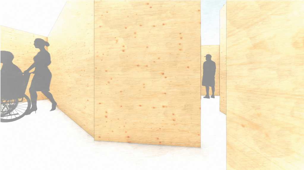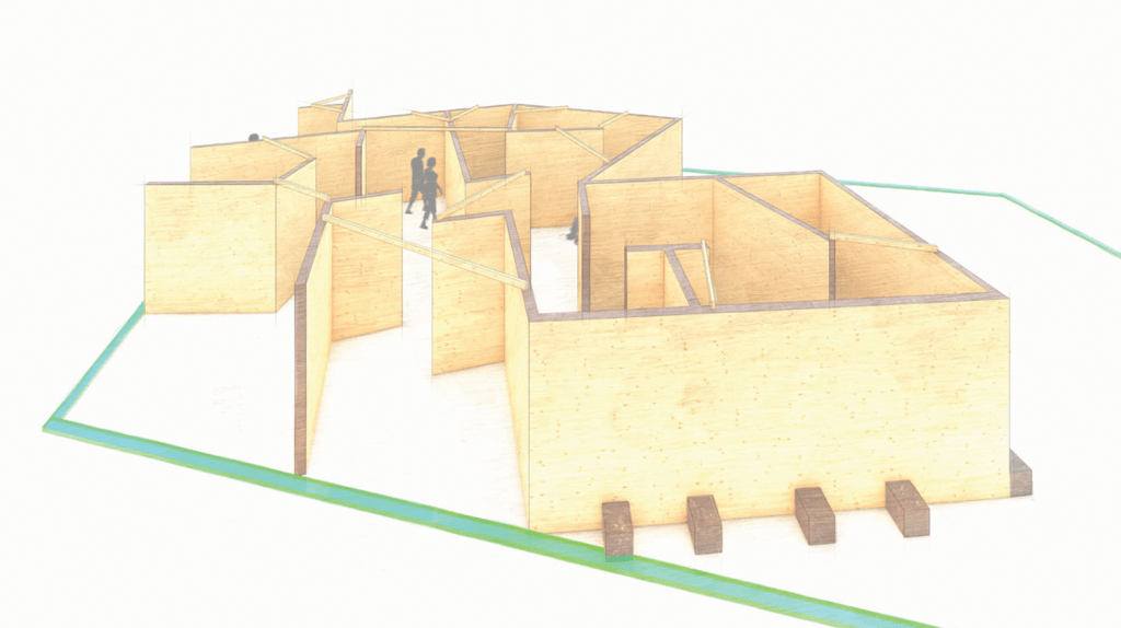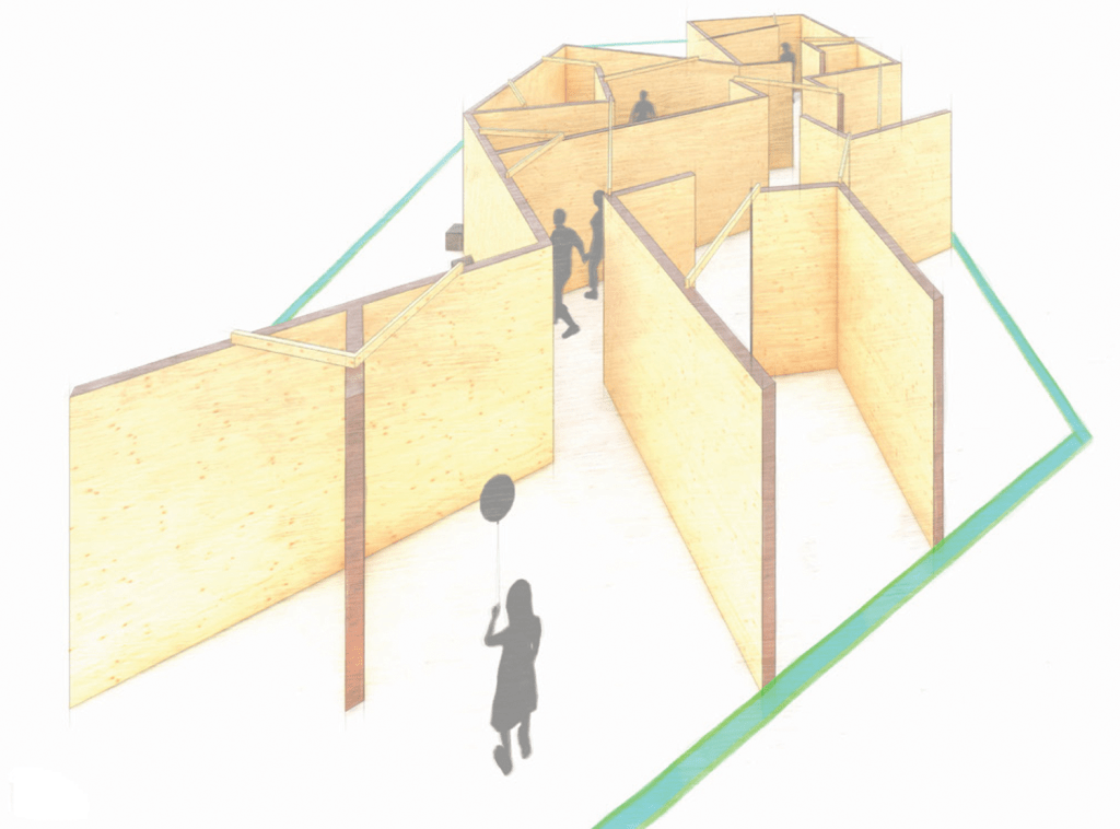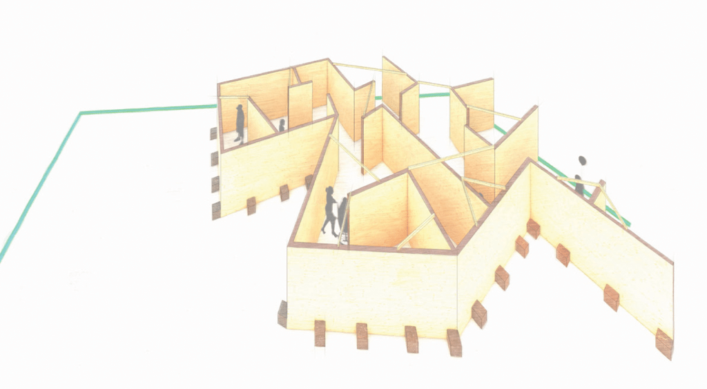 The art maze project had the challenge of fitting a small space but still being engaging, and accessible for all visitors with clearances for wheelchair access. The panels needed to be mazelike and provide an element of disorientation and at the same time be usable for the artists to crate the pieces at scale.