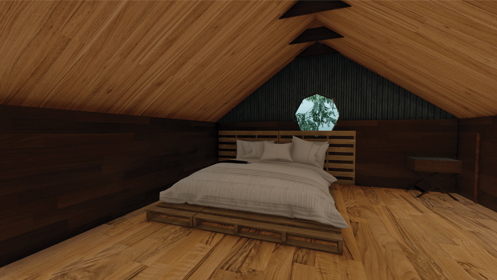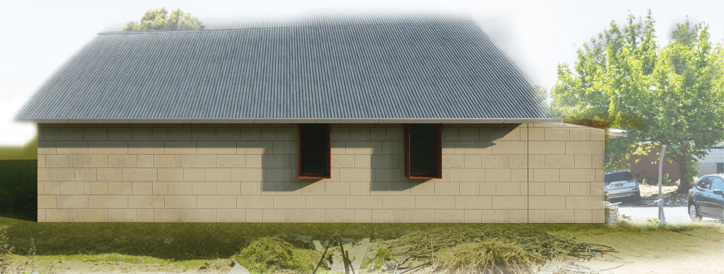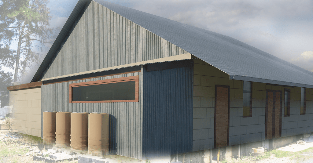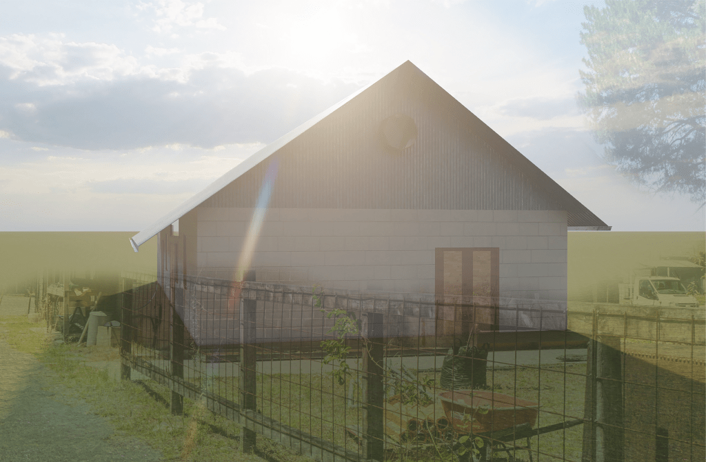 With the family home lost in the devastating 2020 bushfires and still without a place to feel at home, unorthodox solutions have been considered. The bakery that had been an administration space for the small scale regenerative farm presented itself as an intriguing option. The proposed changes to the building create a loft bedroom to best utilse the generous roof section.