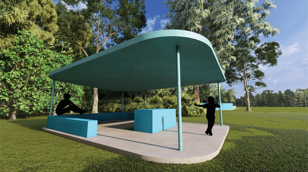 Wooden balustrades soften the outlook of the park and provides protection from falling. A modernised seating and BBQ allow for community engagement and passive supervision.